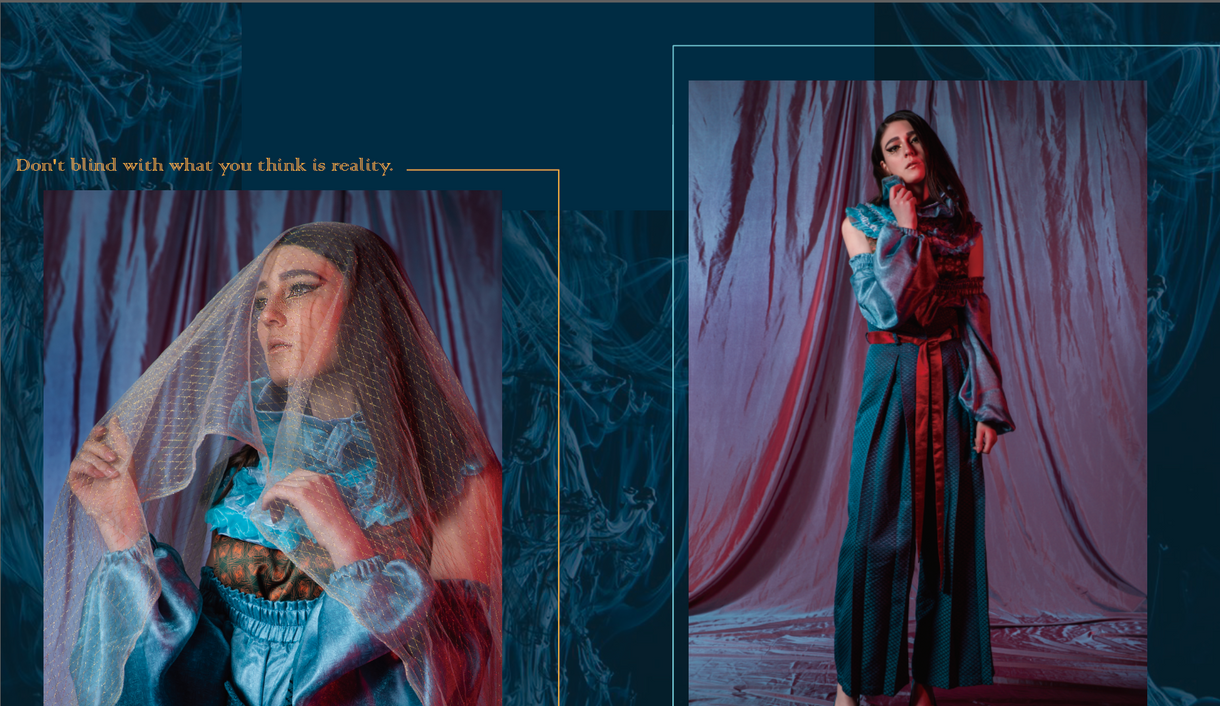 The lifestyle of citizen is being trapped and worshipping of materialistic world. They act like slaves of the ancient world; the difference is that citizen did not realize they are losing the freedom or even get lost in this materialistic world. They are trapped by invisible shackles, not many people realize they are slaves of the money, reputation, and power. We only live once, we should be enjoying the beauty of the natural and explore the world. Not only focus on work and money! Hence, theme of " Invisible Shackles" aims to remind citizen to enjoy life and give themselves a second chance to " rebirth."It is a hidden meaning of the collection.